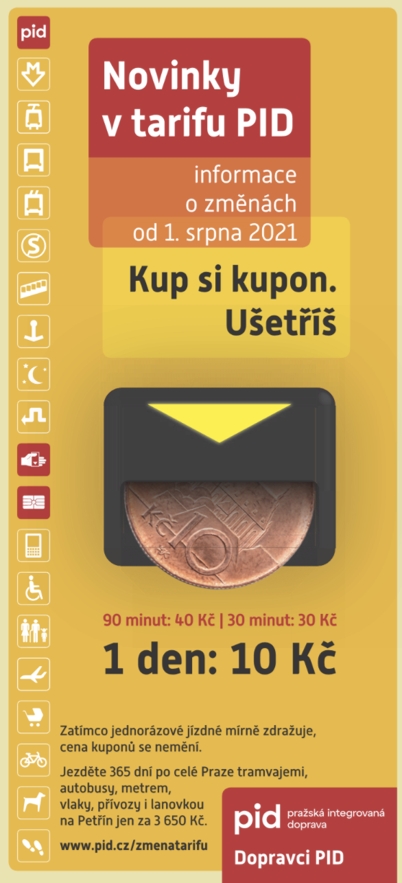 Dopravní podnik města Prahy představil nový ceník jízdného, kdy vedle celkové částky používá přepočet na den. Všimněte si, jakými způsoby komunikuje dané informace. Z psychologického hlediska se doporučuje pracovat s nejmenší jednotkou – v tomto případě jde o částku za den a tu zvýraznit. Zákazník je pak ochotnější produkt zakoupit a má pocit, že ho nákup tolik nebolí.